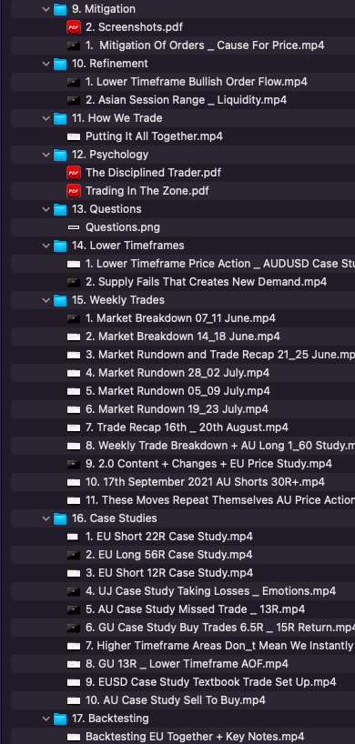 Full course content. From Supply / Demand to Entry types, we can show you everything.
